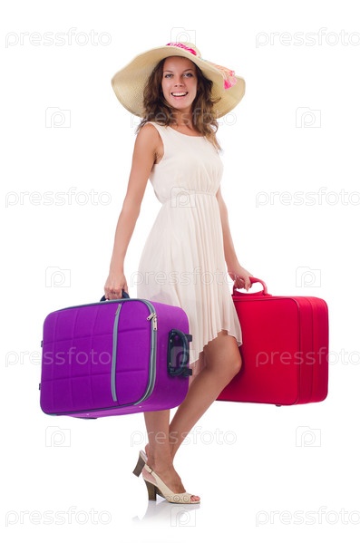 Женщина собирается на летние каникулы, изолированная на белом фоне