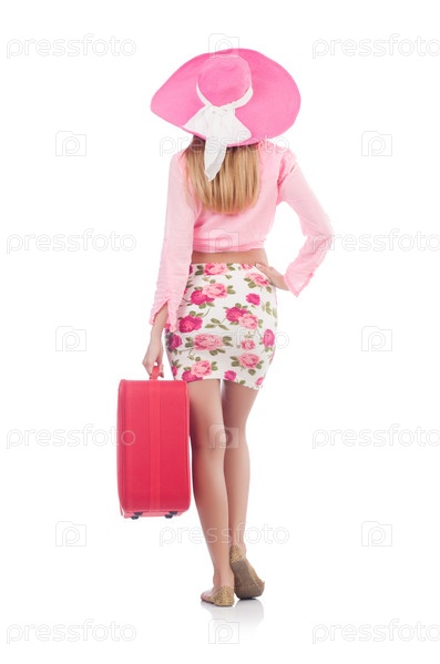 Женщина собирается на летние каникулы, изолированная на белом фоне