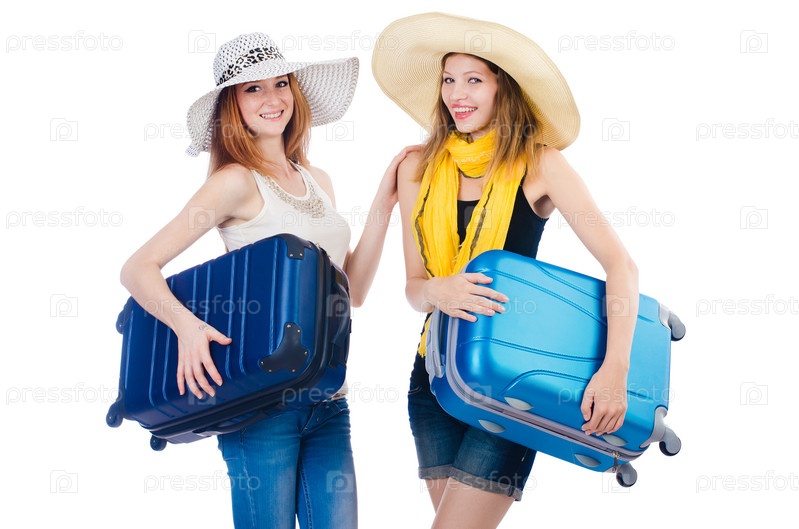 Женщина собирается на летние каникулы, изолированная на белом фоне