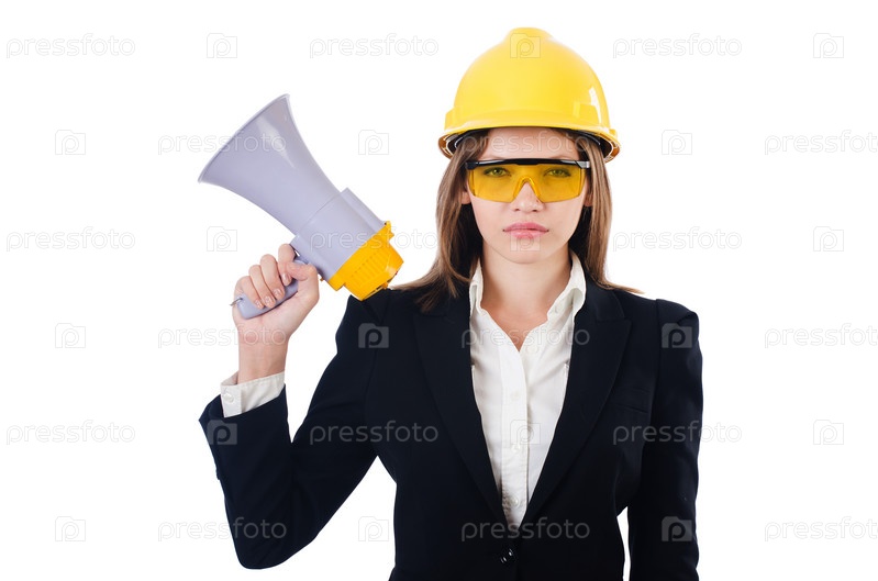 Женщина с мегафоном на белом фоне