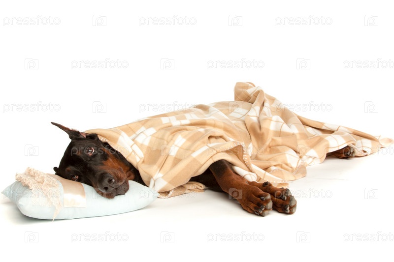 Больная собака под одеялом, изолированная на белом