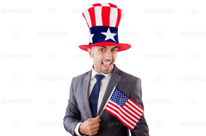 Мужчина с американским флагом и шляпой