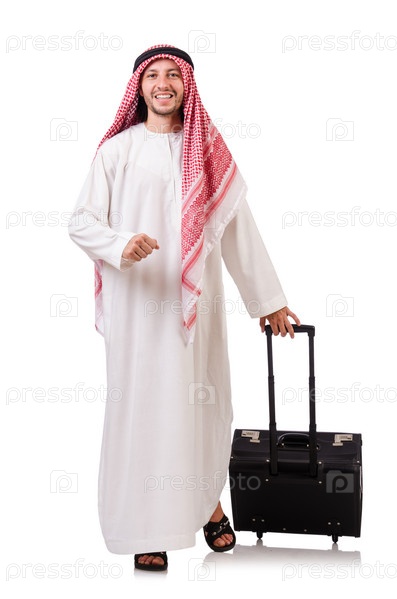 Арабский мужчина с багажом на белом фоне