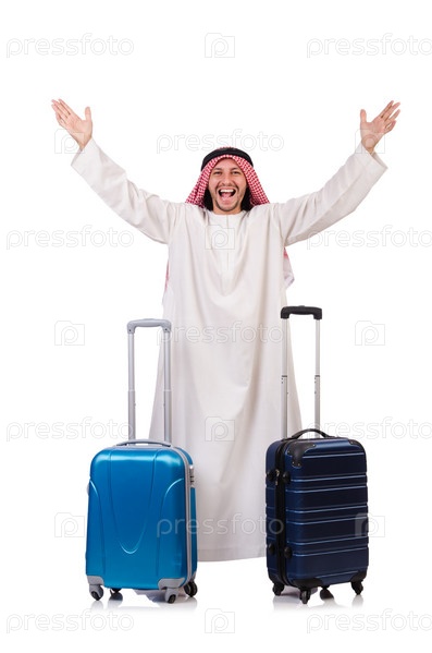 Араб с багажом на белом фоне