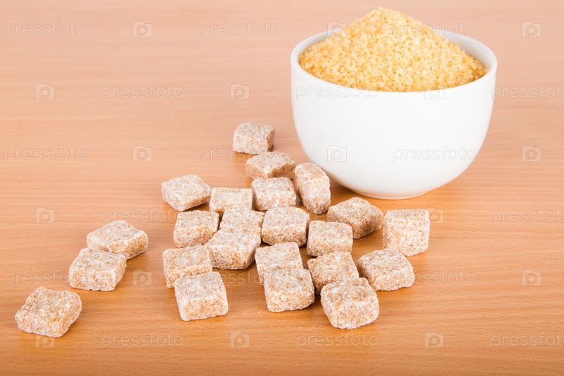 Коричневый тростниковый сахар кубиками и кристаллический сахар