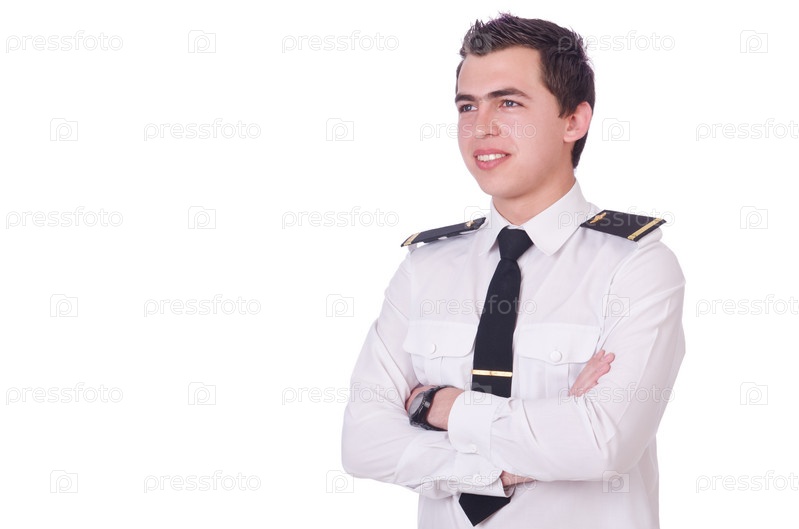 Молодой пилот, изолированный на белом
