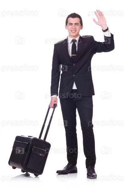 Молодой пилот, изолированный на белом фоне