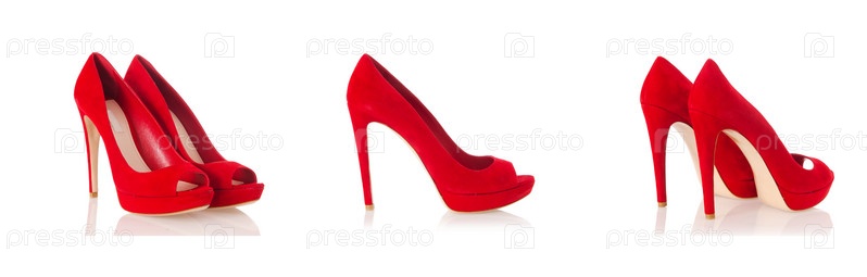 Коллаж с женской обувью, изолированной на белом