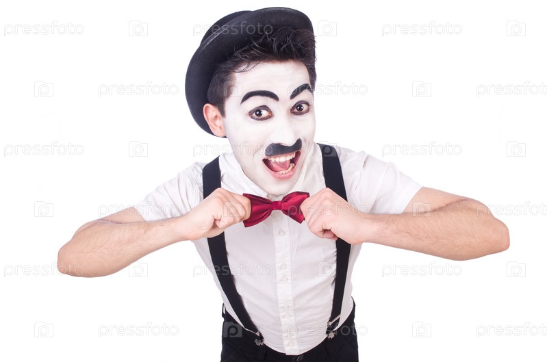 Двойник Чарли Чаплина на белом фоне
