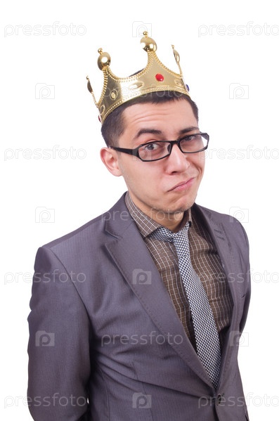 Бизнесмен в короне, изолированный на белом