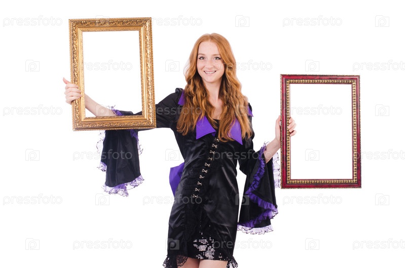 Женщина с фоторамками на белом фоне