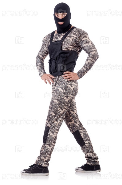 Солдат в камуфляже, изолированный на белом фоне