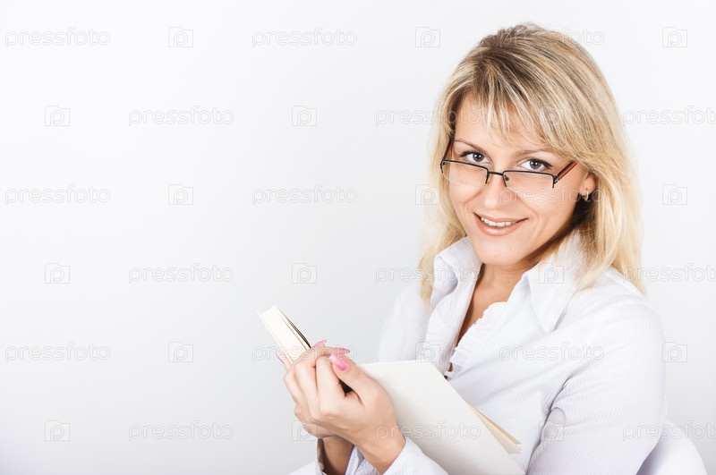 Симпатичная блондинка с белой книгой