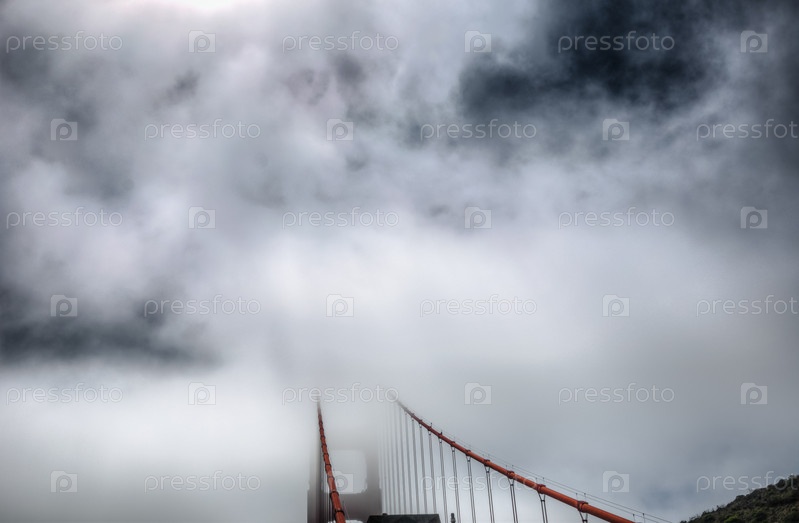 Мост Золотые ворота в Сан-Франциско, Калифорния, США, полностью в тумане