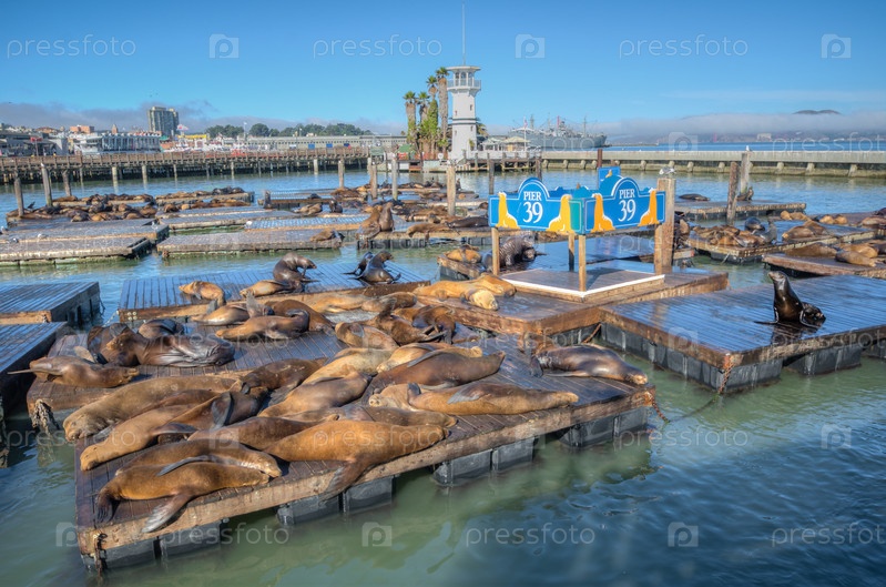 Морские львы на пирсе 39, порт Сан-Франциско, Калифорния, США