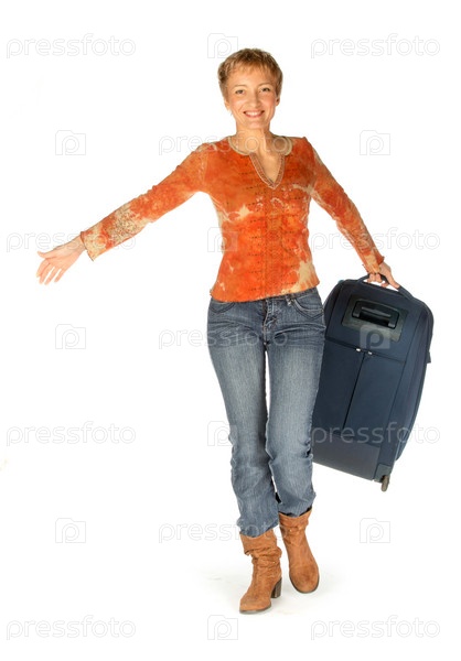 Счастливая женщина с чемоданом