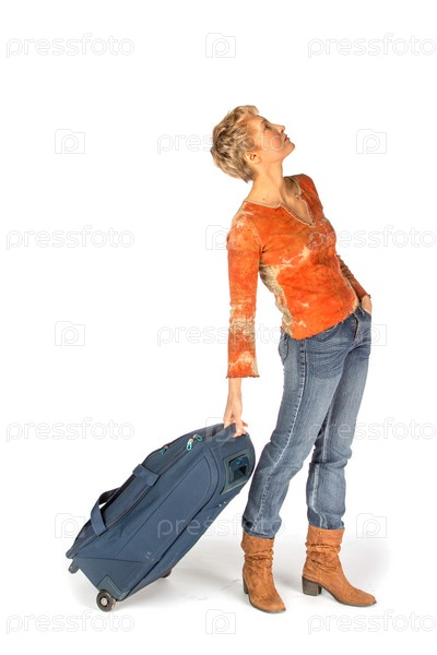 Женщина с чемоданом читает расписание