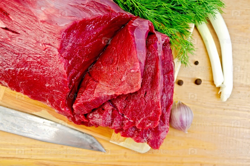 Говядина на деревянной доске с чесноком