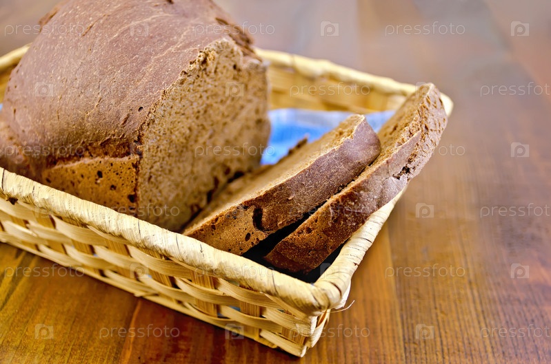 Домашний ржаной хлеб в плетеной корзине на доске