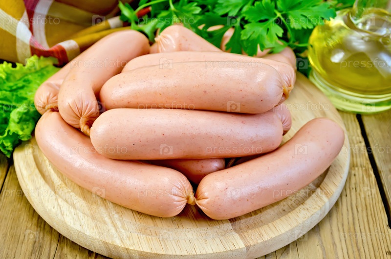 Сардельки с петрушкой на доске