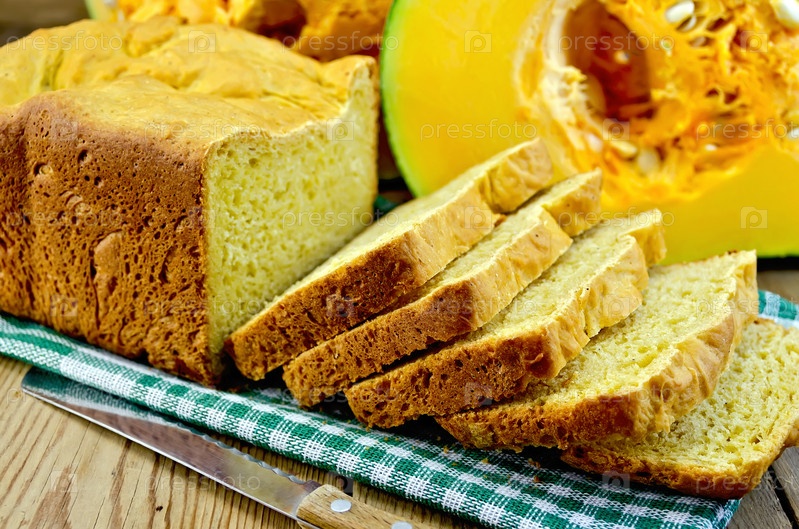 Домашний хлеб из тыквы на доске с ножом
