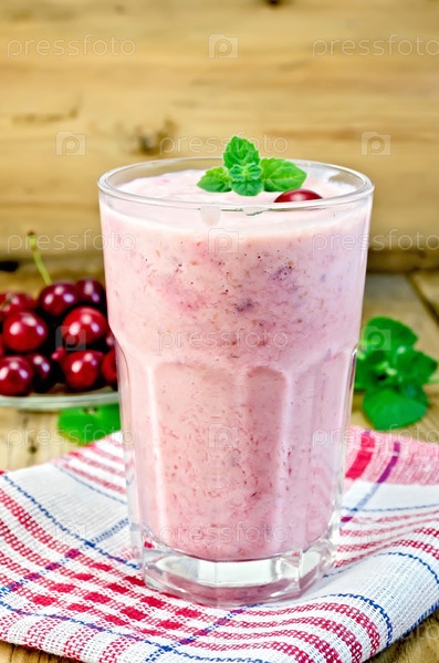 Молочный коктейль с вишней на доске