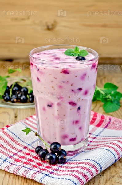 Молочный коктейль с черной смородиной на доске