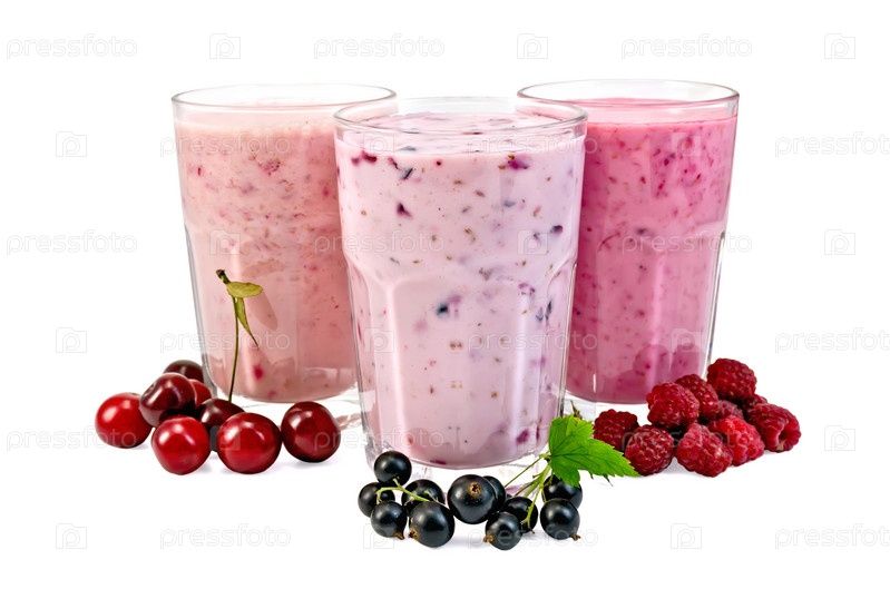 Молочные коктейли с ягодами в стаканах