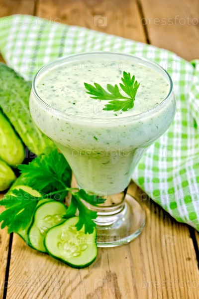 Йогурт с огурцами и петрушкой на доске