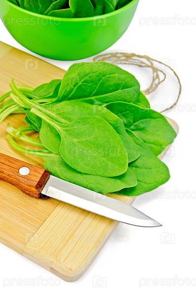 Шпинат на доске с чашей