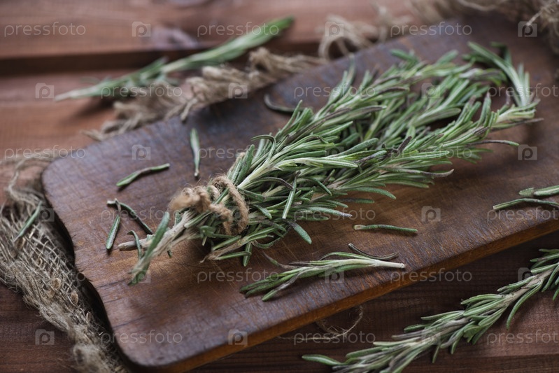 Розмарин на разделочной доске крупным планом