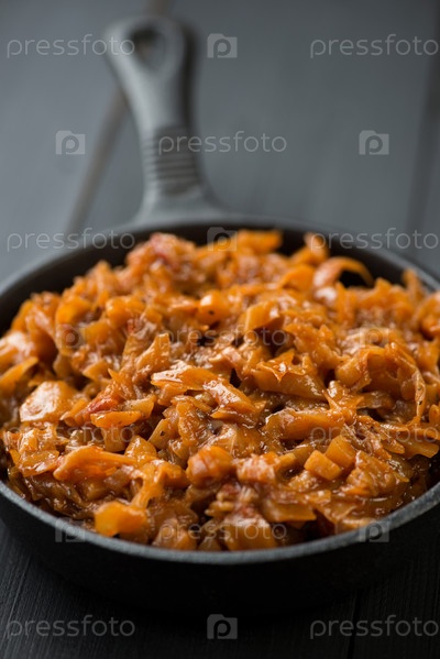Чугунная сковорода с тушеной капустой