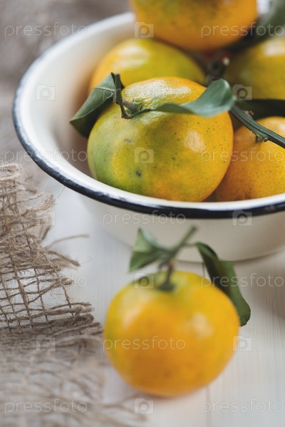 Эмалированная миска с мандаринами крупным планом
