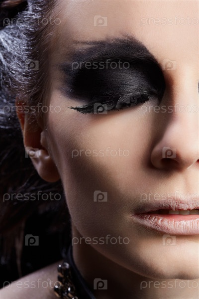 Модель с готическим макияжем в стиле хищной птицы