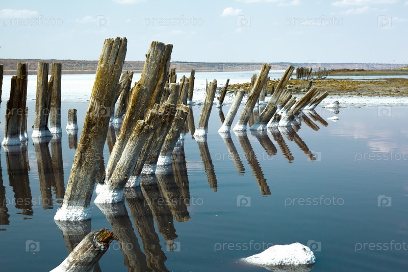Белый соляной пляж на розовым море Куяльник в Одессе, Украина