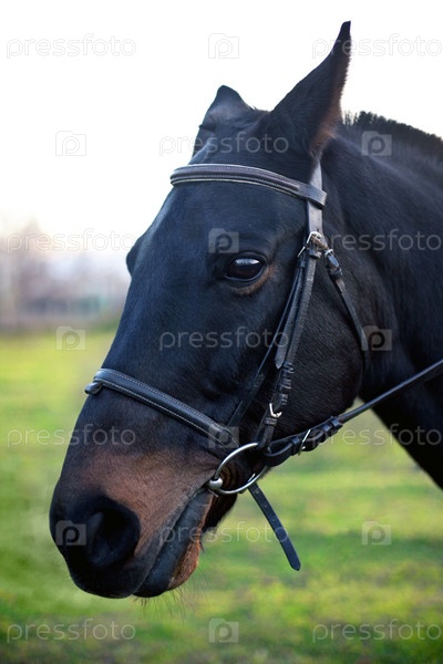 Лошадь на поле крупным планом