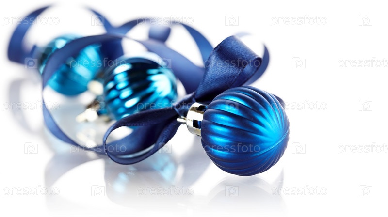 Новогодние синие шары с голубой атласной лентой