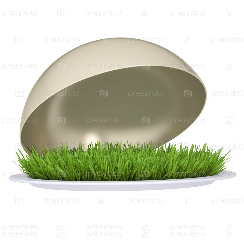 Зеленая трава на тарелке с крышкой