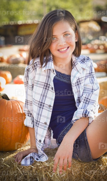 Девушка-подросток на тыквенной ферме
