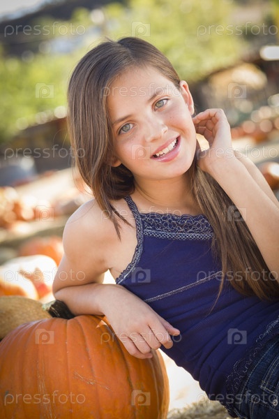 Девушка-подросток на тыквенной ферме