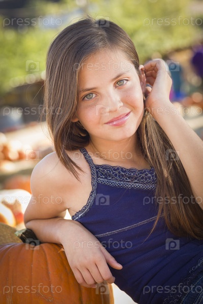 Девушка-подросток на тыквенной ферме