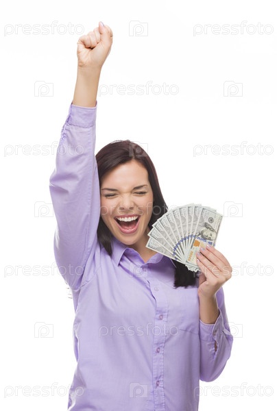 Женщина с веером новых стодолларовых купюр