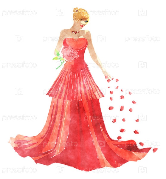 Девушка в красном платье с лепестками
