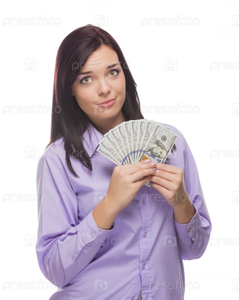 Женщина, держащая стодолларовые купюры