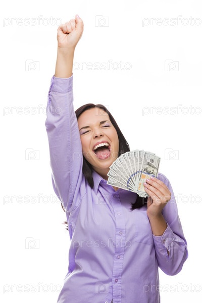 Женщина, держащая стодолларовые купюры