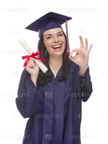 Выпускник в мантии и шапке держит свой диплом