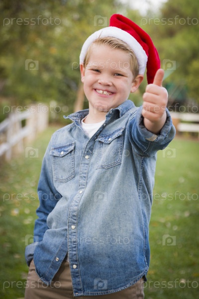 Мальчик в новогоднем колпаке на улице