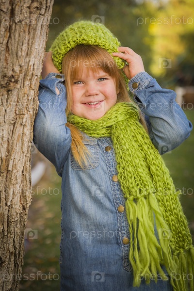 Девочка в зеленом шарфе и шапке на улице