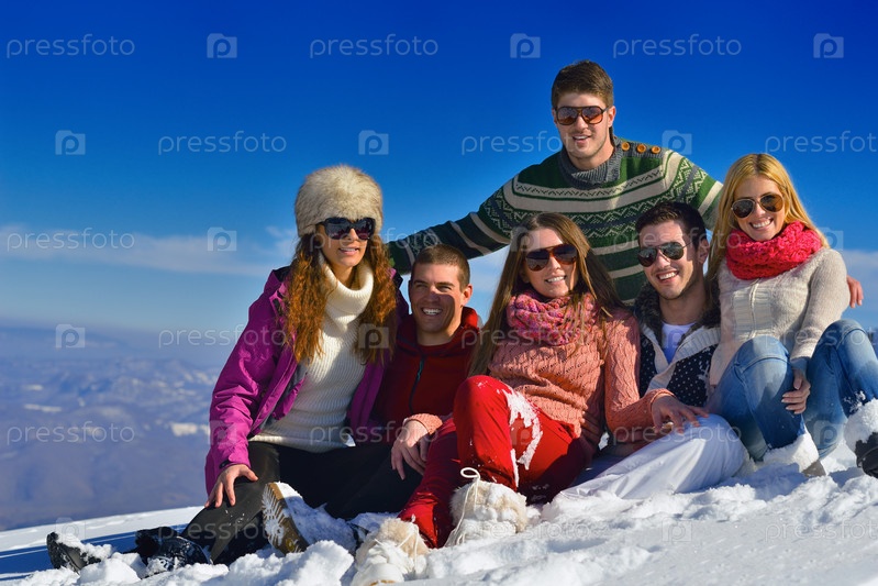 Друзья развлекаются на свежем снегу