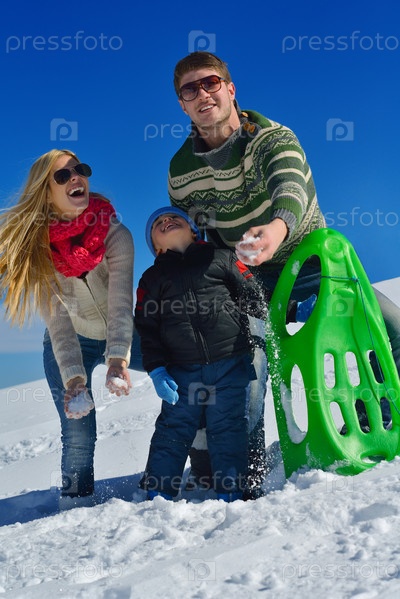 Семья отдыхает на зимних каникулах